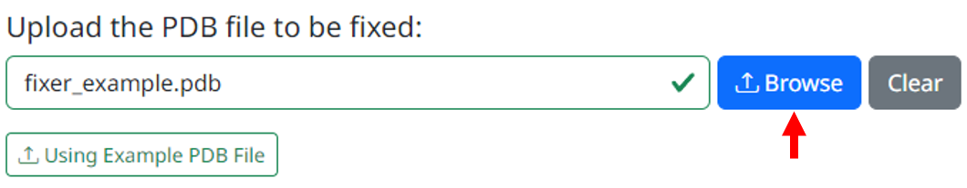 1. Upload your PDB files that need to be fixed, the page will check whether the uploaded files meet the requirements
